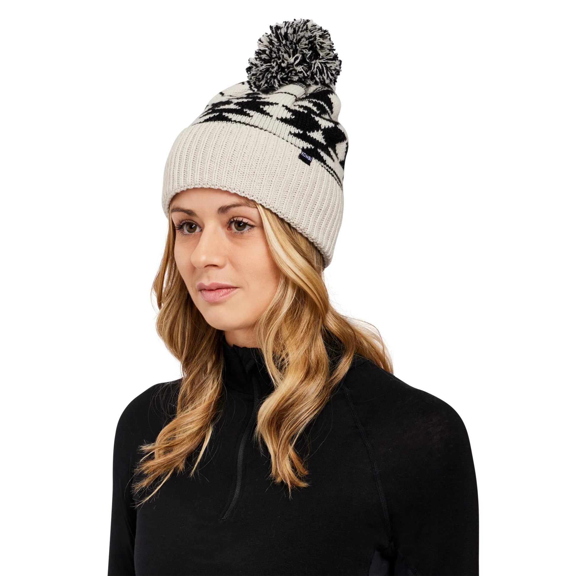 This big knit winter toque is all about comfort. Made of a 50/50 blend of warm wool and soft acrylic, this beanie hat features a classic Jacquard pattern and a KOMBI label as a nice finishing touch. This pom-pom toque is as cozy as can be when skiing, or simply playing in the snow with the family.