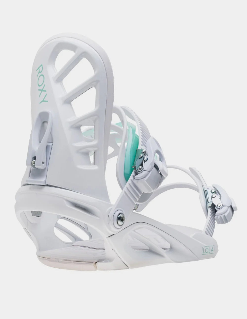 The Roxy Lola binding is designed to match the needs of the Roxy rider with adjustability, comfort, and performance features for precise control. A medium flexing binding, the Lola has a new responsive dual ankle strap construction for lightweight support and comfort, full EVA padded baseplate for extra shock and vibration absorption, and an asymmetric padded highback with tool-less adjustability for intuitive support and control. The baseplate is a responsive dual vent design for reinforced support that works in harmony with all the Lola components. The Roxy Lola is ready for any mountain adventure!